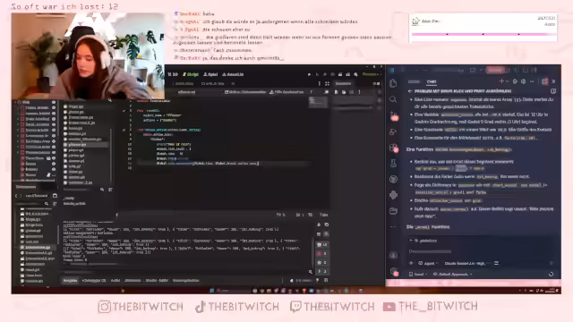 02:41:55Die Streamerin arbeitet an der Implementierung des Pie-Charts für ihr Spiel 'Arbeitszeitbetrug'. Sie benötigt eine Funktion, um Aktionen mit Dauer hinzuzufügen und die Farben des Charts dynamisch zu gestalten. Die Codierung ist komplex und erfordert genaue Berechnungen. Die Streamerin diskutiert verschiedene Benennungskonventionen (CamelCase, SnakeCase) und arbeitet an der Struktur des Codes. Sie ist motiviert, aber auch durch ihre Katze und Hunger abgelenkt.