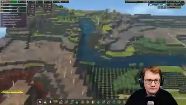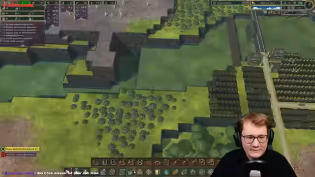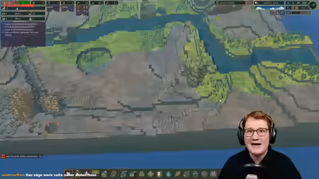 02:23:27Im Spiel Timberborn beginnt der Streamer mit dem Aufbau der ersten Strukturen für die Biber-Kolonie. Die Prioritäten sind das Erledigen grundlegender Bedürfnisse. Er baut zuerst eine Sammlerfahne, um Nahrung in Form von Beeren zu sichern, und einen Holzfäller-Posten, um Holz zu gewinnen. Parallel werden Wasserpumpen an einem Fluss errichtet, um die Wasserversorgung zu gewährleisten. Auch ein Bauernhaus für den Anbau von Kohlrabi wird geplant, um langfristig die Nahrungsmittelversorgung sicherzustellen.