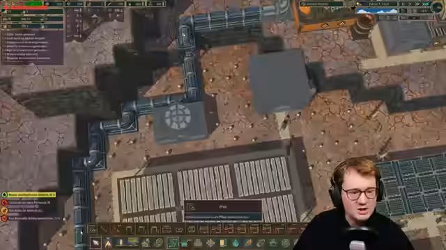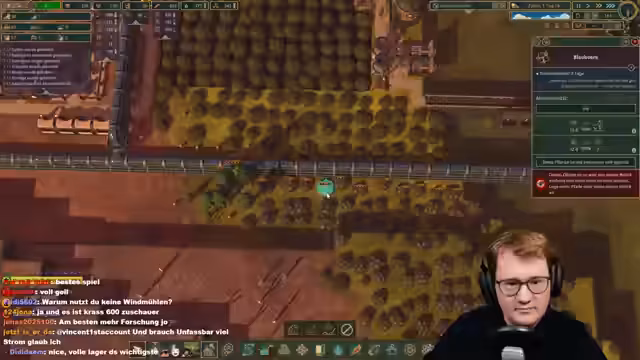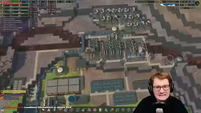 05:39:01Im Stream tritt eine kritische Energiekrise bei den Robotern auf. Die Roboter haben keinen Strom mehr und können sich nicht aufladen, da die einzige Ladestation noch im Bau ist und Ressourcen wie Zahnräder fehlen. Dies führt zu einem Stillstand, da die Robotern nicht arbeiten können und auch 17 Gebäude, vor allem an der Uni, ohne Personal dastehen. Die Priorität liegt nun auf dem Bau einer Ladestation, wofür Zahnräder benötigt werden, was zu einem neuen Engpass führt.