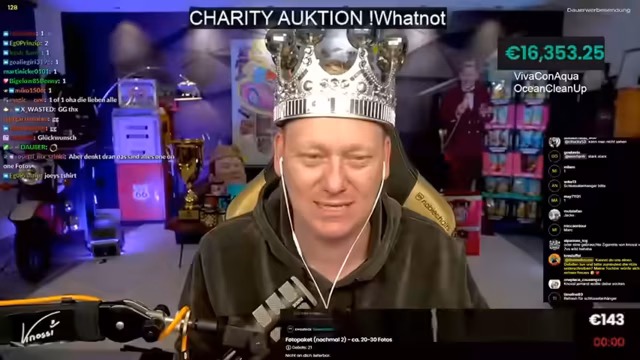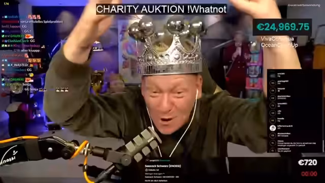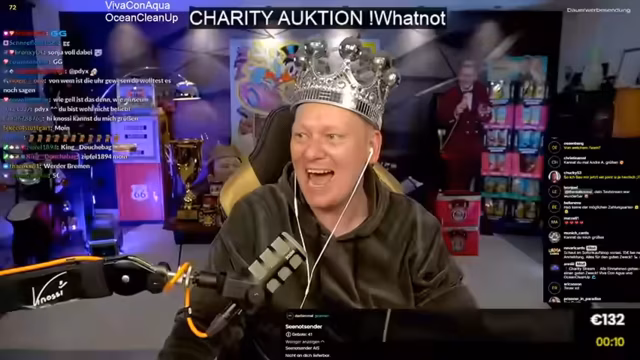00:00:00Um 19 Uhr beginnt der Charity-Stream auf der Plattform Whatnot, der parallel auf Twitch übertragen wird. Der Streamer begrüßt die Zuschauer auf beiden Plattformen und stellt die technische Herausforderung dar, beide Chats zu integrieren. Nach einigen Versuchen gelingt es, eine kleine Whatnot-Chatbox im Stream einzublenden. Es wird angekündigt, dass sämtliche aus der Mission-Unknown-Collection stammenden Gegenstände für die Charity-Veranstigung der Organisationen Viva Con Aqua und Ocean Cleanup versteigert werden. Jeder Zuschauer erhält ein Startguthaben von 15 Euro, um mitbieten zu können.