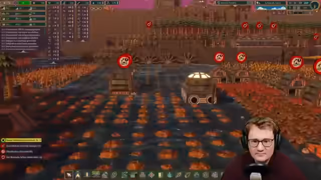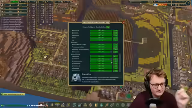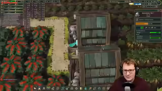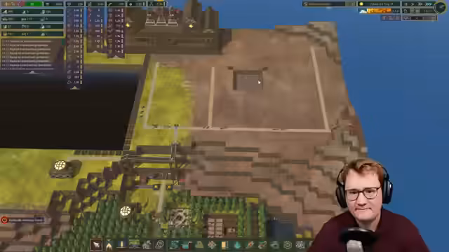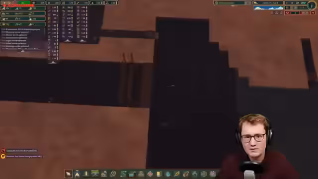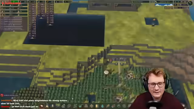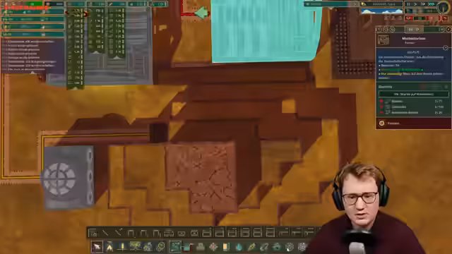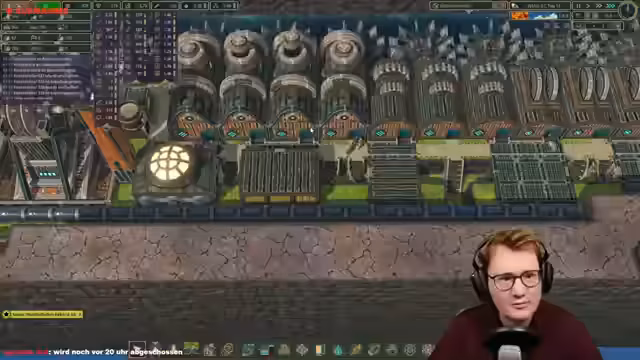 03:35:39Trotz des fortgeschrittenen Spielstands bleiben behandelte Bretter das Hauptproblem. Um die Produktion massiv zu steigern, entscheidet der Streamer, vier Dampfmaschinen zu bauen und eine riesige Holzwerkstatt in Betrieb zu nehmen. Da das Spiel durch die Menge an gleichzeitig stattfindenden Aktionen extrem langsam läuft, wird auf 30-fache Geschwindigkeit geschaltet, um die Fertigstellung der Erdbesiedler abzuschließen. Dies führt jedoch zu Performanceproblemen und Slideshow-Effekten.
