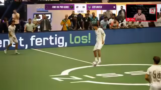 04:13:35Im Anschluss tritt ein Profi-Team mit Ricardo Quaresma und Christian Eckerlin im Format 'Find the Pro' gegen B2B an. Das Regelwerk beinhaltet 'Five Shot' und 'Triple Threat', wobei Quaresma als erfahrener Spieler besondere Aufmerksamkeit erhält. Die Aufstellung zeigt Halstenberg als festes Mitglied von B2B, während Eckerlin als Stürmer mit Bundesliga-Erfahrung debütiert. Das Spiel wird als intensiv beschrieben, mit Fokus auf die taktische Umsetzung und die Integration der Profis in das Ligasystem, wobei die Verbindung zwischen Großfeld- und Icon-League-Erfahrung betont wird.