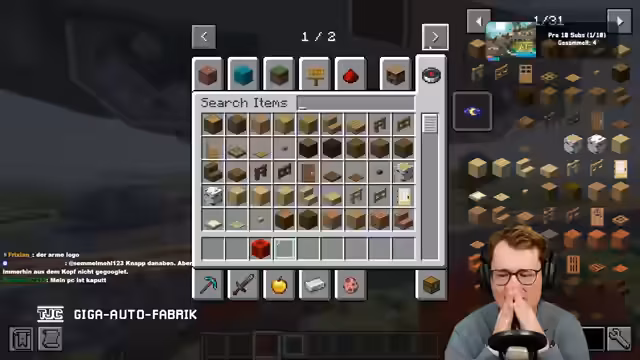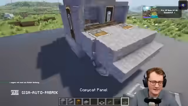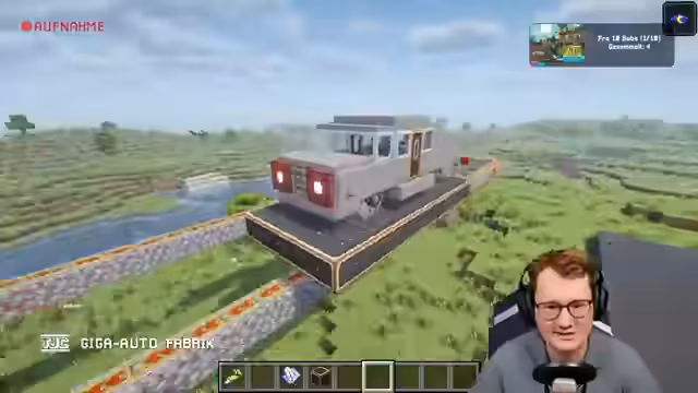 00:19:40Nach der Einrichtung der Welt beginnt der kreative Prozess mit der Konstruktion des ersten Autos. Durch eine Abstimmung im Chat werden die Proportionen der Räder festgelegt. Der Streamer baut einen Prototypen, der als Grundlage für die spätere Produktion in der Fabrik dienen soll. Das Design entwickelt sich von einem einfachen Chassis mit "Gerda"-Rädern hin zu einem vollständigen Fahrzeug mit Karosserie, Türen, Kühlergrill und Innenausstattung, die später individualisierbar sein soll.