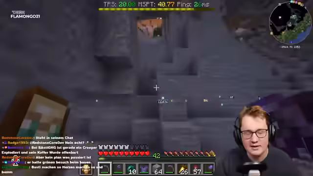 05:15:08Nach dem erfolgreichen Abbau von Jungleholz mit einer mit Fortune 3 verzauberten Spitzhacke, um an die dringend benötigten Setzlinge zu gelangen, wendet sich der Streamer anderen Bereichen zu. Er klärt Fragen zur Verwendung von Verzauberungen, wie z.B. dass Fortune und Silk Touch zusammen keinen Sinn ergeben. Des Weiteren sucht er nach Villagern, bei denen man Looting 3 für Schwerte oder andere nützliche Werkzeuge und Gegenstände wie Rüstung handeln kann, um seine Ausrüstung zu verbessern.