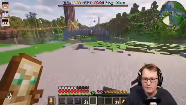 00:37:08Da Sand benötigt wird, teleportiert sich der Streamer in den Shopping District, um von dort aus eine Wüste anzusteuern. Beim Abbau wird eine Wüste aus normalem Sand bevorzugt. Während der Arbeit fällt auf, dass überdimensionierte Farbbänder die TPS (Ticks Per Second) des Servers massiv beeinträchtigen. Dies ist eine wichtige Erkenntnis für die Zukunft der Server-Stabilität und zeigt, wie sehr Technik das Spielerlebnis beeinflussen kann.