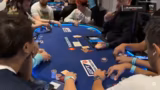 04:53:13Am Tisch ereignet sich ein Zwischenfall, als ein Spieler mehrfach den Floor ruft, was als bewusste Störung gewertet wird. Der Floor-Mann reagiert darauf mit einer Verwarnung und entscheidet, dass der Spieler für eine komplette Runde aussetzen muss. Dies bedeutet, dass er Small Blind, Big Blind und Big Blind Ante verliert. Der Streamer betont, dass ein korrektes Benehmen am Pokertisch wichtig ist und unnötige Provokationen vermieden werden sollten.