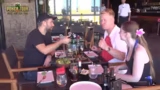 01:01:18Der Streamer und sein Begleiter Adam befinden sich im Gespräch mit Elena, der Kellnerin aus dem Restaurant 'Schoko'. Es besteht ein herzliches und freundschaftliches Verhältnis, das über zwei Tage gewachsen ist. Sie kommunizieren mit Hilfe eines Übersetzers und Elena darf das Menü für die beiden Streamer aussuchen. Sie wirkt professionell, überfordert aber auch leicht, was die humorvollen Kommentare der Streamer hervorruft und die Stimmung auflockert.