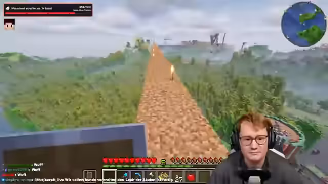 02:52:40Die Dschungelrodung mit der Flying Machine ist ein zeitaufwendiges Unterfangen. Der Streamer plant, die Maschine weiterlaufen zu lassen, während er eine Essenspause einlegt. Das Problem dabei ist, dass die Maschine in ungeladenen Chunks kaputtgehen würde, weshalb ein Spieler in der Nähe bleiben muss, um die Chunks geladen zu halten. Da der Streamer selbst keine andere Aktivität ausführen kann, während er die Chunks lädt, fragt er nach Hilfe. GroKo bietet an, für eine Stunde den Chunk zu laden, was als sehr ehrenhaft empfunden wird. Es wird ein sicherer Ort für GroKo ausgewählt, damit er nicht durch die TNT-Explosionen oder Mobs stirbt. Diese Unterstützung ermöglicht es dem Streamer, die Rodung fortzusetzen, während er sich um andere Dinge kümmert.