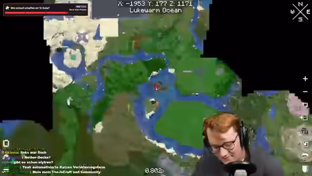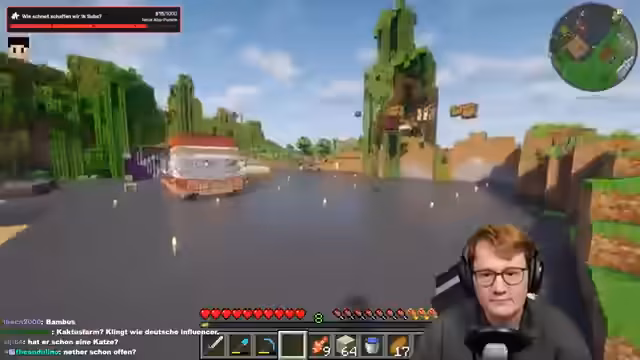 03:02:48Nachdem GroKo die Aufgabe des Chunk-Ladens übernommen hat, kann sich der Streamer der nächsten Aufgabe widmen: dem Bau einer XP-Farm. Er plant den Bau einer Kaktus-Farm und diskutiert verschiedene Designs. Die Effizienz der Farm ist dabei ein wichtiger Faktor, und es wird über die Notwendigkeit von Zwischenebenen debattiert, um zu verhindern, dass Kakteen in andere Kakteen fallen. Parallel dazu sucht der Streamer nach einer Katze, die für einen Katzenteleport benötigt wird. Er bittet Pumi und Logo, die Augen nach einer Katze offenzuhalten und diese gegebenenfalls in einem Boot festzuhalten. Die Suche nach einer Katze und die Planung der Kaktus-Farm sind wichtige Schritte, um die notwendigen Ressourcen und Funktionen für den Fortschritt im Spiel zu gewährleisten.
