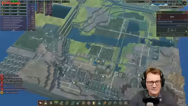 02:58:39Im Stream wird die Planung für einen Roboter-Distrikt vorangetrieben. Es sollen Roboter Roboter herstellen, wofür Fabriken und Energie benötigt werden. Die Diskussion dreht sich um die Anzahl der benötigten Roboter, die Anordnung der Fabriken und die Fallback-Strategie, falls keine Roboter mehr verfügbar sind. Gleichzeitig wird mit dem Bau einer Sprengstoffabrik begonnen, da diese als gefährlichste Anlage gilt und zuerst errichtet werden soll. Die Planung ist komplex und erfordert sorgfältige Abwägung von Ressourcen und Platz.