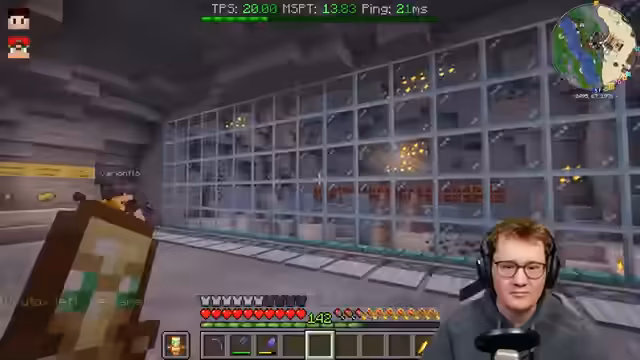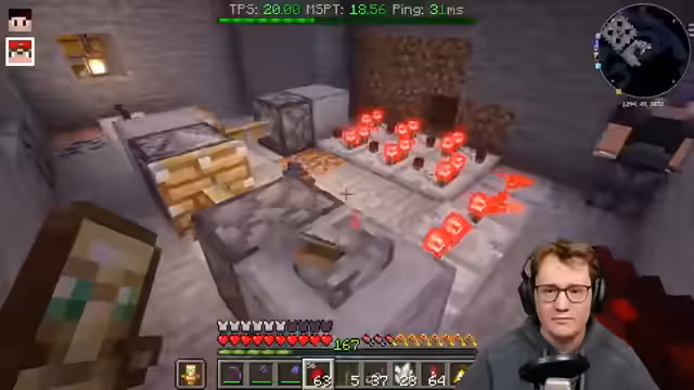 03:46:58Varian erhält Diamanten und der Streamer zeigt sein hochautomatisiertes Trading-System. Eine spezielle Kiste craftet Stäbe extrem schnell, unterstützt durch ein riesiges Silo. Das System nutzt Farm-Wichtel, die automatisch Items aufsammeln und zum zentralen Turm transportieren. Eine Besonderheit ist die Kelp-Produktion: Öfen trocknen Kelp zu Trocken-Kelp-Blöcken, wobei ein Überschuss entsteht. Dieser wird für eine XP-Farm genutzt, bei der Items durch Halten und Drücken von Strg+Q auf Grünfarbstoff repariert werden können.
