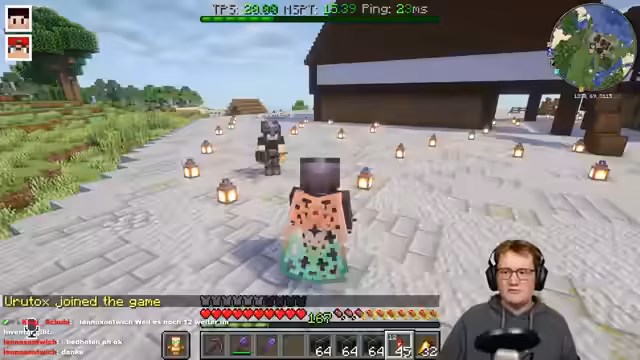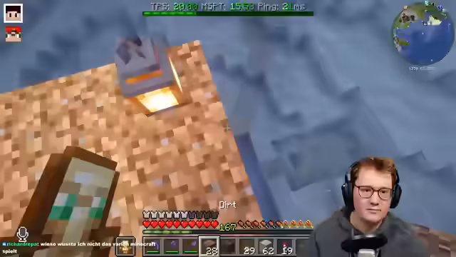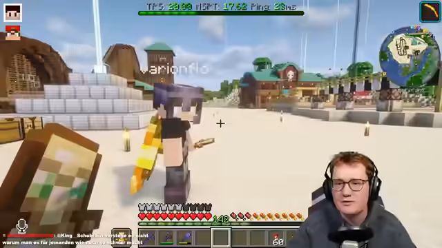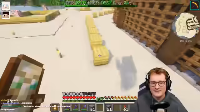 03:10:28Der Streamer begrüßt Varian und klärt Koordinaten für die Ankunft in der Welt. Es folgt ein persönliches Gespräch: Varian hat seit vorgestern frei, ist vorbereitet mit Geschenken und erkundigt sich nach der Situation des Streamers. Dieser erwähnt seine Masterarbeit, viele Orgeldienste und den Stream, betont aber, dass er Minecraft jetzt mit Plan und Ziel spielen genieße, im Gegensatz zu früherem larifari-Bauen. Varian lobt diese Einstellung.