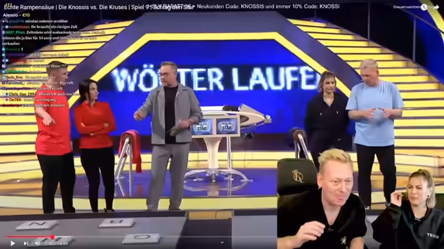 01:01:57Nach den Buchstabenspielen wechselt der Stream zu einem Fuball-Challenge, bei dem die Teilnehmer mit den Füßen auf Buchstaben tippen müssen. Der Streamer zeigt sich frustriert von seiner eigenen Performance und vergleicht sich mit Fußballern, die ähnliche Übungen machen. Im Anschluss diskutiert er mit dem Team über ihre Vorbereitung auf die Show und die unterschiedlichen Strategien bei der Bewältigung der Aufgaben.