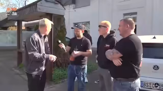 01:26:11Nach der Ankunft am Veranstaltungsort äußert sich zunächst Unsicherheit über die Freundlichkeit des Empfangs. Es wird gescherzt, dass man sich als Star präsentieren und die Anwesenden einschüchtern solle. Es folgt die Erkenntnis, dass man sich in einem 'komischen Hinterhof' befinde und befürchtet, 'aufs Maul' zu bekommen. Es wird beschlossen, zusammenzuhalten und sich vorzustellen, wobei Knossi die Initiative ergreift. Er scherzt über die Möglichkeit, dass der anwesende Felix in 'falsche Kreise' geraten sei und bietet an, ihm 'Blinzeln' beizubringen, falls es brenzlig werde. Knossi erwähnt Pläne für einen Domino Day und die Schwierigkeit, eine geeignete Eventfläche zu finden, sowie die Möglichkeit, Steine aus Holland zu beziehen. Er erinnert sich an die Mini-Playback-Show, die ebenfalls in Holland aufgezeichnet wurde. Nach einer Passwortabfrage stellt sich heraus, dass ein Bekannter, Fies, anwesend ist, den Knossi lange nicht gesehen hat. Es wird angekündigt, dass Thomas bald dazustoßen wird. Abschließend bedankt sich Knossi bei Tami und scherzt über ein Trinkgeld für seine Urlaubskasse, wobei er andeutet, alles mitzunehmen, was nicht niet- und nagelfest ist.