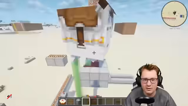 00:18:29Der Streamer verwirft die Leinenmethode als zu unzuverlässig und entwickelt eine neue Idee: eine Führungsschiene aus Glasscheiben, die mit WorldEdit gebaut wird, um das Minecart oder den Happy Ghast stabil nach oben zu führen. Durch Tests mit Fences und Glasscheiben bestätigt er, dass die Hitbox der Blöcke verhindert, dass das Minecraft aus der Schiene ausbricht. Er plant, die Schiene von einer optimalen Position aus zu starten, um maximalen Druck zu erzeugen, und löst gleichzeitig das Schadensproblem durch Schleimblöcke unten.