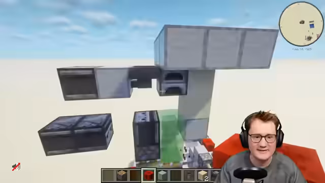 00:11:07Nach weiteren Tests vermutet der Streamer, dass das Problem an den vorbereiteten Windcharges liegt. Er entscheidet sich für eine Lösung, bei der frische Windcharges erst kurz vor dem Schuss hergestellt werden, was die Zuverlichkeit verbessert. Als Alternative erwähnt er die Idee, einen Happy Ghast für einen ähnlichen Effekt zu nutzen. Er testet auch, ob zwei Schweine in der Anlage funktionieren, was aber nicht ideal ist, weshalb er in eine Testwelt geht, um neue Konzepte zu entwickeln.