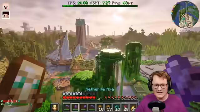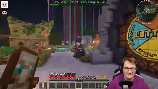 01:39:47Der Stream beginnt mit der Vorstellung des neugebauten Freizeitparks. Es gibt ein Ticket-System für Attraktionen, wobei der Eintritt in den Park und die Nutzung einzelner Attraktionen separat bezahlt werden. Der Park beinhaltet bereits einen Freefall Tower im Creeper-Design und eine Rooftop-Bar. Highlight ist das 'Rad der unglaublichsten Größe', ein Glücksrad mit einer hohen Gewinnquote. Die Gondelbahn führt in den ersten Themenbereich 'Pirate Bay', der an 'Bamboo Bay' aus CraftTech 11 angelehnt ist und von Pumi designt wurde.