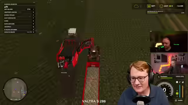 00:41:59Der Streamer und RGB Pixel wechseln die Spur, wobei einiges neben die Spur geht. Es wird festgestellt, dass die Arbeitsweise in echt anders wäre. Das Spiel speichert nicht, wenn man nochmal drüber fährt. Debi wird erwartet, um mit einem Ersatztraktor zu helfen. Der Streamer fährt eine Schlaufe, um alles einzuladen. Die Animation zeigt, dass der Anhänger voll ist, aber der Füllstand ändert sich nicht. Es wird richtig herum gefahren, aber es muss eine Leerreihe gefahren werden. Der Streamer und RGB Pixel fahren in gemäßigten Reihen. Es wird überlegt, ob Debitor mit den Maschinen helfen kann. Der Streamer und RGB Pixel wechseln sich ab. Der Streamer stellt fest, dass der Auftrag nicht so schnell abläuft. RGB Pixel soll mit dem Ersatztraktor kommen. Der Streamer fährt über das Feld, was für Unmut sorgt. Debi wird zur Hilfe gerufen, da das Erntegerät keinen Tank hat und viel Kapazität benötigt. RGB Pixel soll in der Zeit etwas wegbringen.