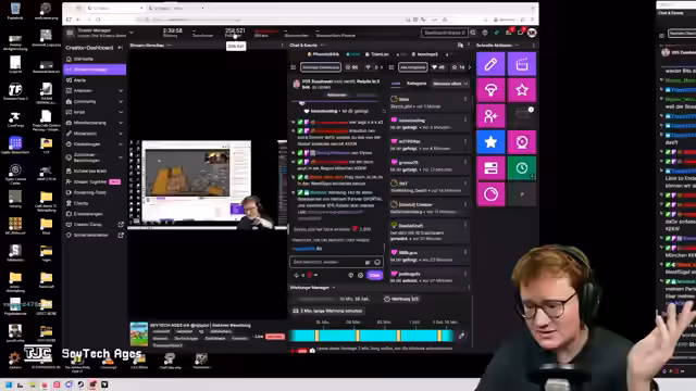 00:29:04Während des Gameplay treten wiederholt technische Probleme auf, die den Stream stark beeinträchtigen. Stefan, ein Co-Streamer, leidet unter extrem langsamen Chunk-Ladezeiten und im Spiel stehenden Frames. Der Streamer vermutet die Ursache in seinem eigenen PC oder in Microsoft-Updates, doch die genaue Fehlerquelle bleibt unklar. Das Problem wird als sehr belastend für die Spielqualität empfunden und zwingt den Streamer, das Spiel möglicherweise neu zu starten.