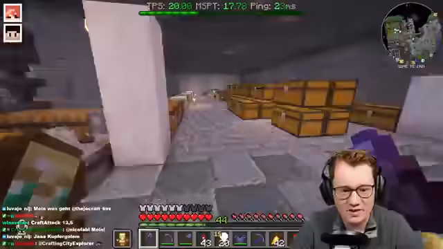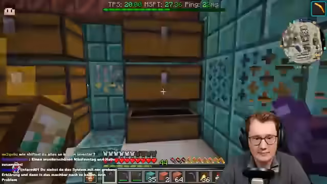 00:17:19Die neu eingerichtete Lotterie wird erfolgreich getestet und funktioniert einwandfrei. Gleichzeitig stehen zu viele Kisten im Weg, was den Arbeitsfluss behindert. Der Streamer äußert den starken Wunsch nach Kupfergolems, die das Problem des Kisten-Chaos lösen könnten, da die Golems diese automatisch sortieren würden.