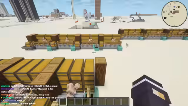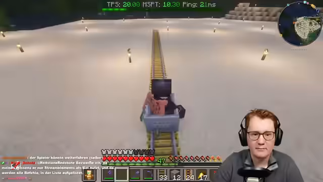 04:09:37Während des Bauprozesses tritt ein unerwartetes technisches Problem auf: ein Chunk-Loader funktioniert nicht mehr korrekt, da der Suchalgorithmus von Early geändert wurde. Dieses Problem blockiert den Fortschritt und muss warten, bis ein Update kommt. Parallel dazu werden weiterhin die komplexen Redstone-Sequenzen für die Achterbahn-Elemente optimiert, bei der jedes gelöste Problem oft ein neues nach sich zieht.