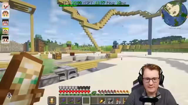 05:31:41Zwischen den technischen Arbeiten und der Vorbereitung auf die Eröffnung finden zahlreiche interaktive Elemente statt. Der Streamer unterhält sich mit anderen Teilnehmern wie Spark, RGB und Early über diverse Themen von Achterbahnen über Schlafgewohnheiten bis hin zu Minecraft-Updates. Es kommt zu humorvollen Anspielungen und kleineren Streichen, die die dynamische und freundschaftliche Atmosphäre auf dem Server unterstreichen.