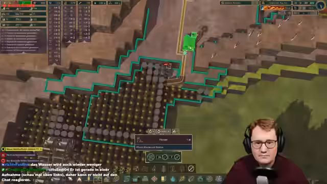 04:22:01Der Streamer plant den Bau einer unterirdischen Krankenstation, um Platz für Dekoration und die Behandlung kranker Biber zu schaffen. Dabei werden die Kranken- und Faulwasserbetten aus dem bisherigen Bereich entfernt. Für die Energieversorgung der Station, die etwa 500 PS benötigen soll, ist der Einsatz von zwei Wasserrädern vorgesehen. Parallel wird der Bau einer neuen extraktaufarbeitenden Höhle diskutiert, die als Backup dienen und automatisch durch Schlepper beliefert werden soll. Der Bau wird priorisiert, um zu verhindern, dass Bots sich gegenseitig blockieren.