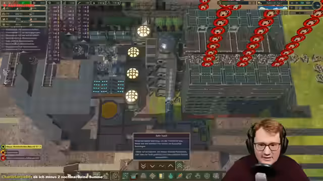 04:42:30Der Bau der Energienetzwerke schreitet voran. Neue Ladestationen werden errichtet, um die Roboter zu versorgen, die ihrerseits als Schlepper für den Transport von Rohstoffen eingesetzt werden. Die Population der Roboter wird aufgestockt, um die Logistik, insbesondere die Versorgung mit Extrakt, zu beschleunigen. Ein Bauvorhaben, die Energiewelle in der Eisenfabrik, wird jedoch vergessen und muss nachträglich ergänzt werden.