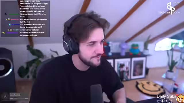02:42:52Der Streamer interagiert intensiv mit seinem Chat und lädt Zuschauer ein, ihm während des Streams zuzusehen. Er erwähnt zukünftige Pläne wie Dashcam-Inhalte und Snogs-Bestellungen. Die Stimmung bleibt trotz gelegentlicher Spielfrustration überwiegend positiv, wobei der Streamer versucht, die Zuschauer zu halten und sie zu motivieren, weiter zuzuschauen.