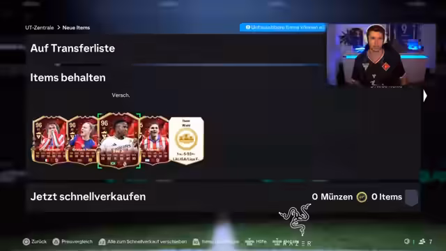 00:03:34Nach seiner Rückkehr aus dem Urlaub berichtet der Streamer von einem ärgerlichen Zustand seines FIFA-Kontos. Seine Moderatoren haben während seiner Abwesenheit ausschließlich Premium-Packs gezogen und dabei nur schwache Spieler wie Lewandowski und Rafinha gezogen. Viele gute Packs und wöchentliche Belohnungen wurden ignoriert. Sein Verein wurde durch die Aktionen leergeräumt und liegt in einem chaotischen Zustand vor, was ihn sichtlich verärgert.