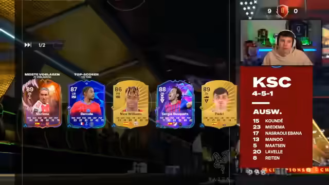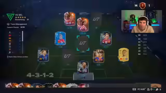 00:00:43Der Streamer begrüßt seine Zuschauer mit einem entspannten Sonntagsgruß und erwähnt, dass er gut geschlafen hat. Er kündigt an, dass sie heute wieder die Weekend League Rewards jagen werden, die in der Vergangenheit sehr gut für sie waren. Allerdings gibt es ein Problem: Eine gewünschte Karte ist um 100.000 Coins im Preis gestiegen. Er plant, den Koop-Partner Pazzo anzurufen, um gemeinsam ein Team zu bauen. Der Streamer hat bereits einige Ideen für das Team, muss aber noch einige Karten kaufen und die Chemie optimieren. Er erwähnt, dass er eine Formation spielen wird, die er noch nie zuvor ausprobiert hat: die 4-3-1-2. Während des Teambaus äußert er sich frustriert über die Schwierigkeiten, die Chemie zu regeln und die gewünschten Spieler einzubauen. Er fragt auch nach der Möglichkeit, Squads in der FUT-App zu speichern, da er diese Funktion nicht finden kann. Pazzo wird angerufen, um beim Teambau zu helfen, da er sich als Teambau-Profi bezeichnet.