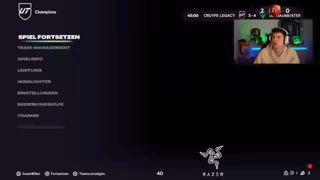 01:48:20Der Streamer erreicht einen Spielstand von 7:0 und macht eine Pause, um sich auf die kommenden 'Abfucker-Games' vorzubereiten. Er liegt direkt 1:0 hinten und fühlt sich müde und unkonzentriert. Das Spiel geht in die Verlängerung gegen ein Team mit 'NPC-Squad' und Full-Meta-Karten in der Abwehr. Der Streamer kritisiert die Verteidigung des Gegners, die trotz schlechter Spielweise durch die Meta-Karten immer einen Spieler in der richtigen Position hat. Das Spiel endet im Elfmeterschießen, das der Streamer verliert, nachdem er den ersten Elfmeter verschossen hat. Er ist frustriert über die Niederlage und die Leistung seiner eingewechselten Spieler wie Vlaovic und Totti.