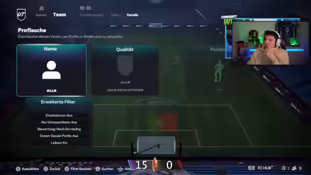 00:08:18Pazzo wird in den Stream geholt und berichtet, dass er ebenfalls noch Stress beim Teambau hat und die Chemie nicht hinbekommt. Er lädt den Streamer ein, sich sein Team anzusehen. Pazzo erwähnt, dass er nicht auf seinem Main-Account spielt, da ihm noch XP für Level 9 fehlen, um eine bestimmte Season-Pass-Evo zu erhalten. Er fragt nach dem PSN-Namen des Streamers, um ihn zu adden. Die beiden diskutieren über die bevorstehenden Fußballspiele, insbesondere das Spiel von Freiburg gegen Mainz. Sie sprechen über die Einschränkungen von Pazzos Zuschauer-Account, der keine Partys beitreten kann, was die gemeinsame Ansicht von Rewards erschwert. Sie beschließen, Discord für die Kommunikation zu nutzen und aktivieren 'Stream Together'. Der Streamer präsentiert sein Team, das unter anderem Mbappé und Ansu Fati enthält, wobei er Ansu Fati bevorzugt. Sie diskutieren über die besten Spieler für die linke Mittelfeldposition, die Tiki-Taka spielen können, und überlegen, wie sie die Chemie des Teams verbessern können, da sie mindestens 31 Chemiepunkte benötigen.
