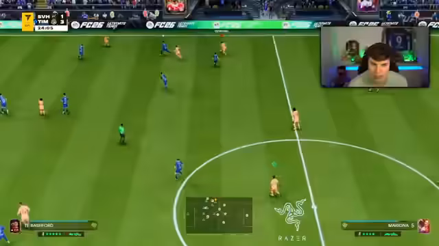 00:28:38Nach dem Kauf von Luis Skelly und dem Umbau des Scream-Teams wird es in Rivals getestet. Das erste Spiel verläuft desaströs und endet mit einer klaren Niederlage. Der Streamer analysiert das Spiel und gibt den Spielern wie Danny Dacosta die Schuld, während er die eigenen Schwächen bei der Verteidigung und der Torwartsteuerung zugibt. Das neue Team wird als unzuverlässig und die 99er-Werte als nicht im Spiel wirksam empfunden, was zu großer Frustration führt.