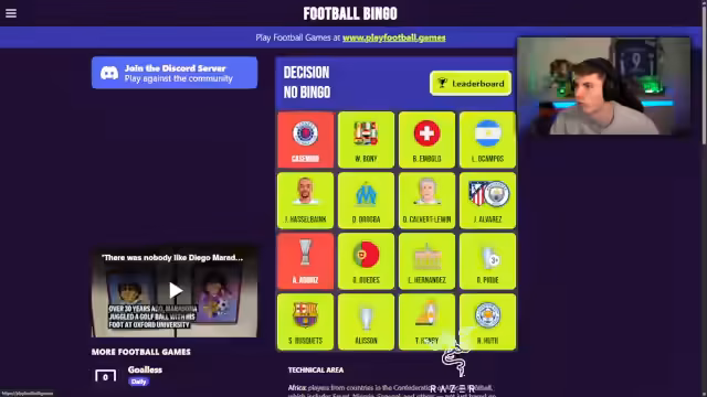 03:17:53Nach den Golden Goal-Runden wird ein Fußball-Bingo-Spiel mit der Community gestartet. Der Streamer erklärt die Regeln und teilt einen Link zum Spielraum. Die ersten Runden dienen dem Kennenlernen des Spiels, wobei schnell klar wird, dass das Skippen von Spielern und das schnelle Reagieren entscheidend sind. Es kommt zu mehreren Revanche-Runden, da der Streamer und die Teilnehmer versuchen, ihre Ergebnisse zu verbessern und das Spielfeld vollständig auszufüllen. Die Herausforderung besteht darin, Spieler bestimmten Kategorien zuzuordnen, wie z.B. UCL-Gewinner, Spieler bestimmter Ligen oder solche, die mit bestimmten Legenden gespielt haben. Trotz Schwierigkeiten und gelegentlichen Fehlern sorgt das Spiel für viel Unterhaltung und Wettbewerb innerhalb der Community.