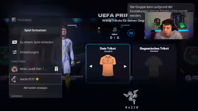 00:07:26Der Streamer freut sich über die Verfügbarkeit von Player Picks und erwähnt, dass er zuvor seine Badges verkauft hat, da diese ihn nervten. Er plant, viele Packs zu öffnen, die er durch das Abschließen von Gauntlets und Cups erhalten wird. Insgesamt stehen ihm noch viele Spiele in verschiedenen Cups und Turnieren bevor, darunter die „Gauntlets“ und die „World Tour“ für Fred. Er stellt das Spiel wieder auf Deutsch um, da er es zuvor auf Englisch hatte, um Verwechslungen bei den Evos zu vermeiden. Er kündigt an, dass er versuchen wird, in der „Primetime-Liga“ Golden Goal zu spielen, um die benötigten Spiele schneller abzuschließen, da er nur 20 Versuche hat und die Spiele sonst zu langwierig sind. Er hofft, dass die Gegner kooperativ sind, da es ihm nur darum geht, ein Tor zu erzielen und die Spiele schnell zu beenden.