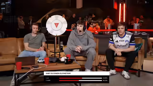 05:25:02Nach dem Spiel wird eine angekündigte Challenge gestartet. Ein Zuschauer namens Patrick tritt gegen Laddi und Gaucho an. Es geht um zwei Tickets für ein Bundesligaspiel. Nach drei Schüssen unten und drei Schüssen oben geht der Zuschauer als Sieger hervor und gewinnt die Karten. Die Herausforderung als unterhaltsamer und entspannter Teil des Streams präsentiert.