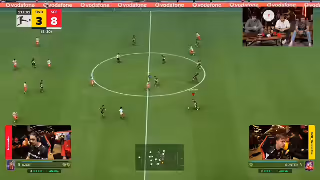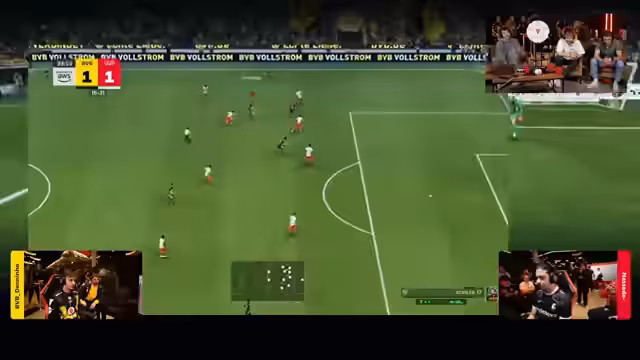05:33:20Endlich beginnt das lang erwartete Finale zwischen dem BVB und dem SC Freiburg. Die Aufstellungen werden vorgestellt, und es fällt auf, dass Virgil für den BVB spielt, anstelle des erwarteten Luca Nasada. Trotzdem wird das Matchup als hochklassig und würdig für das Finale in der MHP Arena in Stuttgart angesehen. Beide Teams starten voller Energie ins Spiel.