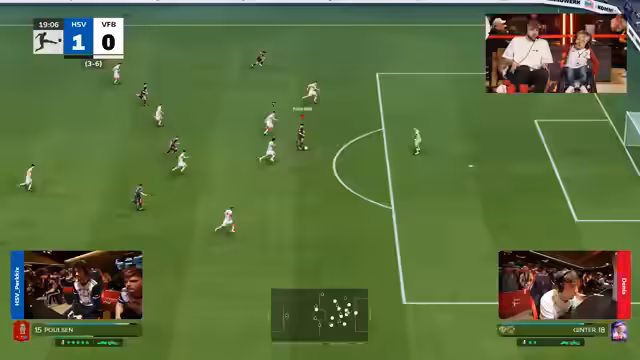 02:35:39Die zweite Halbzeit im HSV-Spiel beginnt, und der HSV führt mit 3:0 und 7:4 in der Gesamtwertung. Der Puls bei den Stuttgartern steigt, da sie das Spiel langsam aus der Hand zu geben drohen. Jota Dullen findet weiterhin nicht in seinen Rhythmus und wirkt nervös. Der HSV verteidigt konsequent und presst den VfB stark in dessen eigene Hälfte zurück. Für den VfB wird es nun entscheidend, schnell ein Tor zu erzielen, um das Selbstvertrauen zurückzugewinnen und das Spiel noch zu drehen.
