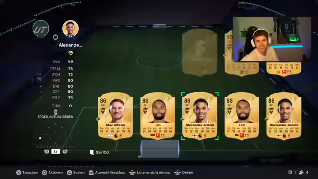 01:59:25Nach Abschluss der ungeliebten Weekend League öffnet der Streamer die Belohnungen. Er äußert sich zunächst pessimistisch über die Qualität der Packs und ist davon überzeugt, dass unter Rang 3 keine nennenswerten Karten sein können. Nach dem Öffnen stellt er jedoch fest, dass er einige brauchbare Spieler wie Barco und Salah ziehen konnte, auch wenn diese nicht sofort ins Team passen. Insgesamt bleibt die Bewertung der Rewards zwiespältig, da er es nicht für fair hält, dass sich der Erfolg stark auf die Karten, die man ziehen kann, auswirkt und zukünftig nicht mehr an der Weekend League teilnehmen möchte.