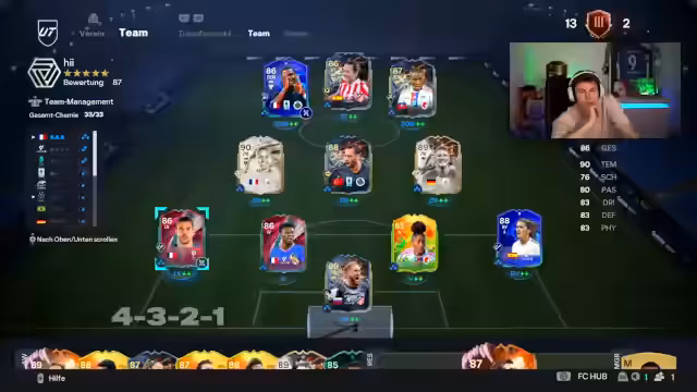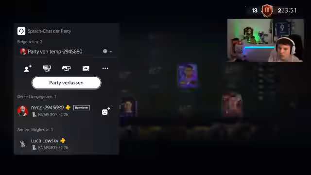 00:03:31Der Stream beginnt mit anfänglichen technischen Problemen, da der Streamer Schwierigkeiten hat, sich mit EA zu verbinden und der PlayStation-Account von Luca, dessen Weekend League gespielt werden soll, gesperrt ist. Nach kurzer Klärung und Wiederherstellung des Accounts kann der Streamer das von ihm für Luca gebaute Team vorstellen. Er hat Musiala, Dalot und Oblak verpflichtet, wobei Oblak für 30.000 Münzen als Schnäppchen gilt. Es wird erwähnt, dass das Team ein Budget von einer Million Coins hatte, aber der Marktpreis der Spieler sich schnell geändert hat. Der Streamer plant, mindestens 100.000 bis 200.000 Coins durch Rewards zurückzugewinnen. Parallel dazu wird über die Möglichkeit gesprochen, Icon Packs im Stream zu öffnen und die PSN-ID für Einladungen geteilt.