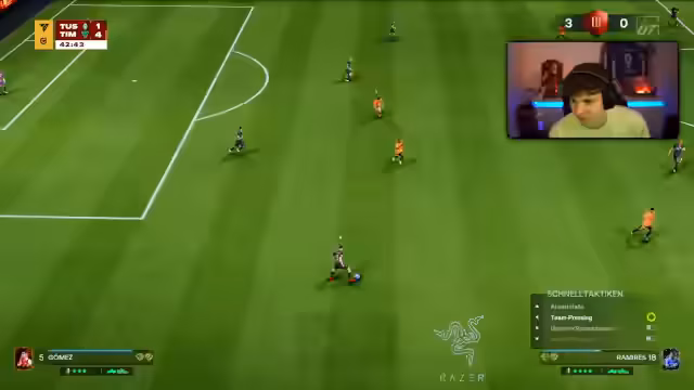 01:58:42Nach einem vermeidbaren 3-1-Rückstand fühlt sich der Streamer dem Spiel nahezu geschlagen. Er beschreibt seine Defensive als todesähnlich und seine Angriffe als unlogisch. Als es nach einer guten Torchance jedoch zum 3-2 wird, schöpft er neuen Mut. Er bezeichnet das nunmehrige Spiel als Schicksalskampf und kämpft um den Ausgleich, den er durch eine gute Balleroberung und anschließende Torchance auch erzielt, sodass es wieder unmittelbar vor dem Ausgleich steht.