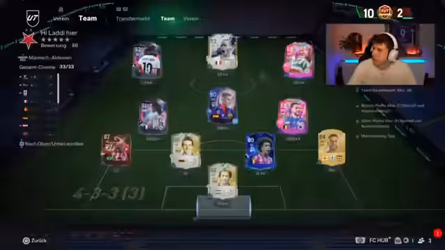 02:17:02Der Streamer kehrt zum Golden Goal Modus zurück und präsentiert sein Team mit 1,8 Millionen Flocken. Er überlegt, Bellingham in sein Team einzubauen und sucht nach Karten, die für Evos geeignet sind. Dabei zieht er den Ori und überlegt, Lodder ins Mittelfeld zu stellen, um Pass-Playstyles zu erhalten. Er sucht nach portugiesischen Spielern für Lea und findet Fabio Carvalho und Jota interessant. Anschließend füllt er sein Team mit Spielern aus Celtic und Spanien. Er stellt fest, dass sein Spiel abgestürzt ist und äußert seinen Frust über die häufigen Abstürze. Nach einem Neustart sucht er nach zwei Außenverteidigern mit Perfect Link und überlegt, Baku zu holen. Er diskutiert mit dem Chat über verschiedene Optionen und entscheidet sich schließlich für Di Lorenzo und Estupinan. Abschließend optimiert er die Chemie seines Teams und kauft die benötigten Spieler.