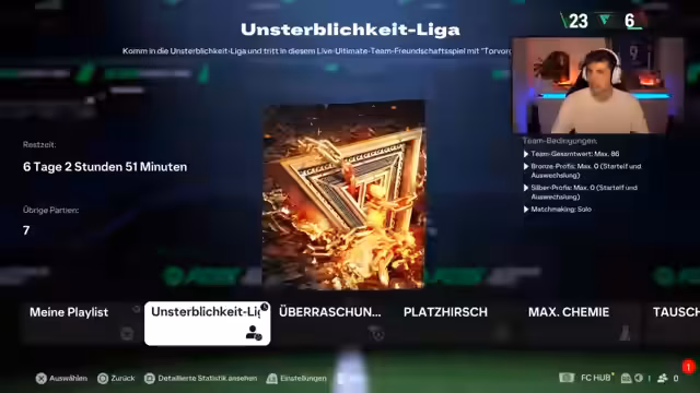 00:03:38Der Streamer startet mit dem Ziel, den Maldini zu erspielen und erwähnt, dass Thuram teuer geworden ist, was ihm zugutekommt. Er hat noch 6 Millionen zur Verfügung und plant, shoppen zu gehen. Er stellt fest, dass er diese Woche wenig gespielt hat und muss sich erst wieder zurechtfinden. Es gibt viele Packs zu öffnen, darunter Winter Wildcard und Mascherano Player Picks. Er betont seine Vorliebe für Spieler mit der 'Rakete' und vergleicht Maldini mit seinem Hato, den er gerne gespielt hat. Er zeigt seinen Merkin, den er in eine abgelaufene Evo gesteckt hat und erwähnt einen Hero Pick. Er muss einige Aufgaben erledigen, darunter Champs Games und Squad Battle Games, und überlegt, ob er das Captain für die Immortal Liga nehmen soll. Er hat Turam verkauft und müsste Blanc einsetzen. Er glaubt, dass er bereits das bestmögliche Team hat und überlegt, ob er Grüger für die Spiele in den SP braucht, wenn dieser schon sechs Silber hat.