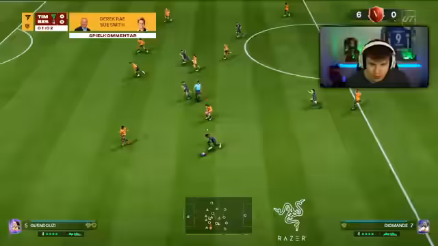 00:37:15Während der Live-Spiele wird intensiv über die Spielzüge und Gegner gesprochen. Der Streamer analysiert die Stärken und Schwächen der gegnerischen Teams, z.B. die defensiven Probleme eines Gegners mit einem ungewöhnlichen System. Es werden auch die Spielermodelle und deren Einfluss auf das Spielverhalten thematisiert.
