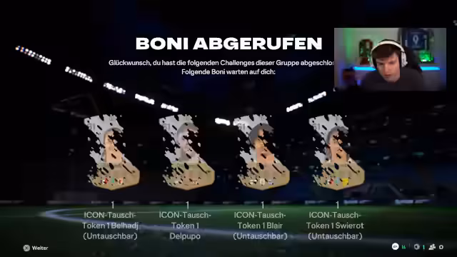 01:56:24Nach den anfänglichen Rückschlägen beginnt der Streamer mit einer Aufholjagd und gewinnt mehrere Spiele in Folge. Er diskutiert mit einem anderen Streamer über die Qualität der Belohnungen am Ende der Weekend League. Die Spannung steigt, da beide darauf wetten, wer die besseren Karten ziehen wird. Der Streamer äußert Unmut über den niedrigen Wert der gezogenen Spieler, insbesondere eine Future Star-Karte für Wolfsburg, die er als 'schlechteste Karte, die man kriegen kann' bezeichnet.
