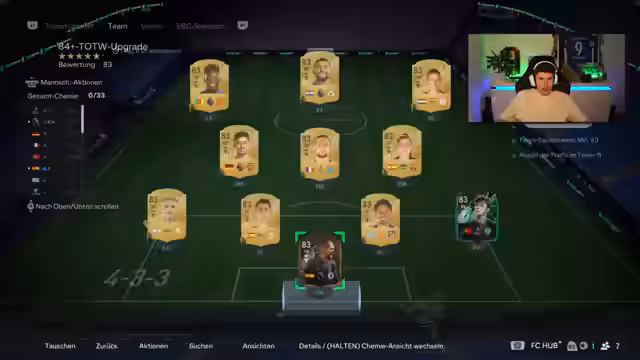 01:42:48Es gestaltet sich schwierig in der Weekend League Qualifikation. Es wird über den Einsatz von Sechsern und schwitzigeren Formationen nachgedacht, da die Spiele unnötig schwer sind. Besonders frustrierend ist die Limitierung durch die Positionen der Spieler, so kann Bellingham nicht als ZDM eingesetzt werden, obwohl er die Fähigkeiten dazu hätte. Es wird angeregt, dass man die Spieler flexibler aufstellen könnte, eventuell mit kleinen Chemie-Einbußen. Trotz einer Halbzeitführung von 3-1 läuft hinten nicht alles rund, und der Streamer fragt sich, wann Beckenbauer ins Spiel kommt. Es wird über die Promo gesprochen, die am nächsten Tag startet.