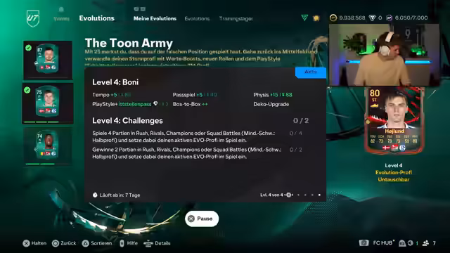 02:24:24Es wird gehofft, dass der Gegner einen Disconnect hat, damit ein Spiel für Heulund zählt und noch ein Quali-Spiel möglich ist. Heulund ist fertig und bekommt ein saftiges Plus 20 Upgrade. Es wird überlegt, ob man auf YouTube streamen soll, da Nick dort teilweise hohe Zuschauerzahlen erreicht. Es wird erwähnt, dass es kein großer Aufwand mehr ist, auf beiden Plattformen gleichzeitig zu streamen. Es wird erneut erwähnt, dass der Account gesperrt ist und Refi um Hilfe gebeten wird. Es wird überlegt, Heulund in die Foot Birthday Evo zu stecken, um Schuss-Playstyles zu erhalten. Kevin wird eingeladen, um bei den Aufgaben zu helfen. Es wird festgestellt, dass der Verein leerer ist als das Gehirn.
