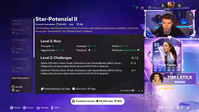 00:19:48Das Ziel sind 11 Siege in der Weekend League, normalerweise werden 13 Siege erreicht, aber 15 Siege sind unrealistisch. Es wird überlegt, ob morgens oder abends leichter zu spielen ist. Grimaldo wird für 800 Coins gekauft. Der Teamname wird diskutiert und Fauder Harzer wird als passend empfunden. Es wird versucht, Pavlovich auf dem Transfermarkt zu finden und zu kaufen. Es werden 5k Coins gespart. Es wird entschieden, den Safe wieder auf Basic zu lassen. Es wird überlegt, Bret in die Evo zu tun. Rosemonde soll für Rivals aufgespart werden. Es wird überlegt, wer der beste Offensivspieler ist. Pavlovich wird für 495k gekauft. Segui muss auf die Bank. Paule muss noch ein Spiel Evo gemacht werden. Das neue Team wird vorgestellt und für gut befunden. Faula soll ein paar Finesse-Schüsse machen. Es wird in das erste Weekend League Spiel gestartet. Es wird überlegt, wann das erste Spiel verloren wird, die Prognose ist 6-0.