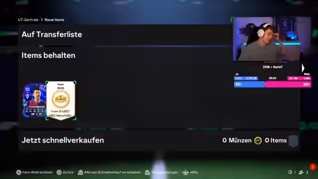 00:03:35Der Stream beginnt mit dem Ziel, in der Weekend League einen 9-0-Lauf fortzusetzen. Es stehen noch sechs Spiele aus, die potenziell entscheidend sein könnten. Das verwendete Team beinhaltet Spieler wie Hummels, Merkin und Nonomondash. Beckham wurde ebenfalls ins Team geholt. Nach einem obligatorischen Nieser werden Packs geöffnet, die Solomon Otabor enthalten. Es wird überlegt, ob man Balotelli holen soll, da Schalker im Team benötigt werden. Der Streamer freut sich auf die Weekend League und erwähnt, dass sein Bann aufgehoben wurde. Er spricht über seine Arbeitszeiten und diskutiert mit Zuschauern über die Qualität von Müller im Spiel. Es wird überlegt, ob 15 Siege realistisch sind, wobei der Fokus auf einem guten Tag liegt, um dieses Ziel zu erreichen. Der Streamer äußert sich kritisch über seinen Packluck und hofft auf bessere Ergebnisse.